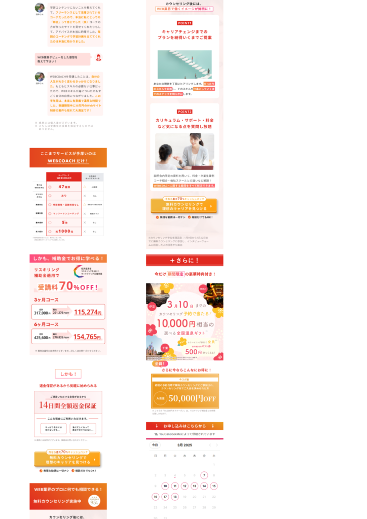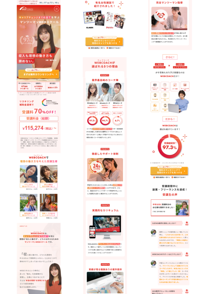 ランディングページ制作 2026年1月7日 最終更新日時 : 2026年1月7日 portfolio_y.hirano 【製作時間】20時間【使用ソフト】Photoshop・illustrator・Figma・HTML・CSS・jquery【担当業務】デザイン・実装【意識した亊】スクロール離脱を防ぐためjqueryで動きをつけたLPを作成しました。